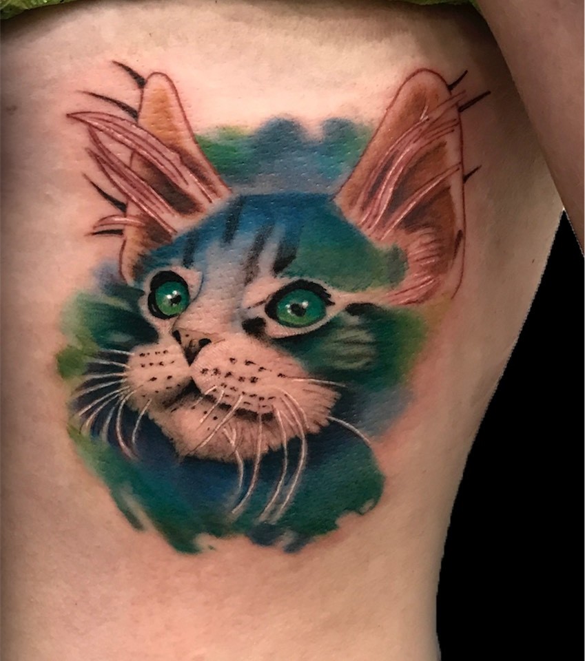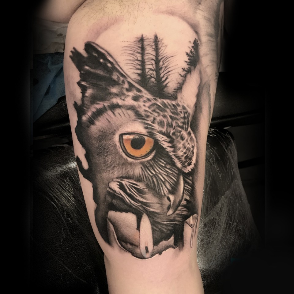 Cuida cada detall amb tots les seus dibuixos i sempre busca l'harmonía entre el tatuatge i el cos, sense perdre mai l'originalitat del disseny i els seus acabats.